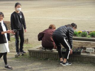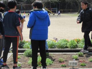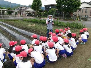 最後に松山さんから「芋は食べられるために大きくなるのではなく、子孫を残すために大きくなり、それを私たちはいただいているんだよ。」という大切な話も聞かせていただきました。「芋つる植え」を通して、大切なことも学ぶことができた2年生でした。