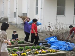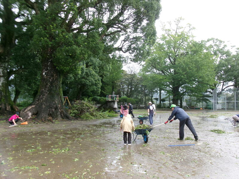 この日は、学校支援ボランティアの松山さんご夫妻のほか、5年生の保護者の方や松山さんのお知り合いの方計16名が手伝いに来てくださいました。