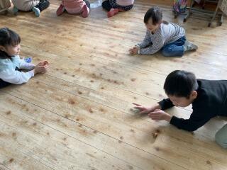 後半は、違う内容の活動です。「heart(ハート)」「circle(円)」「triangle(三角形)」などの形を英語で言います。初めての学習ですが、一生懸命覚えます。中には、大人でも難しい「rectangle(長方形)」という単語までありました。