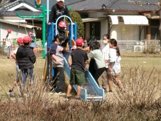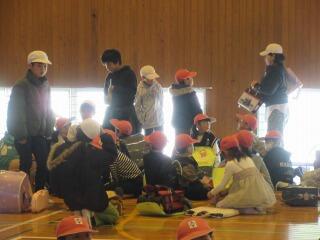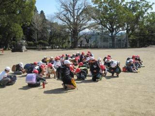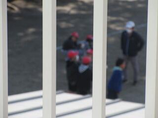 非常ベルが鳴って、しばらくすると火災発生場所が特定され、避難誘導の放送を聞いて子どもたちは急いで静かに運動場に移動しました。