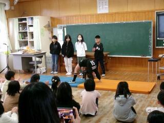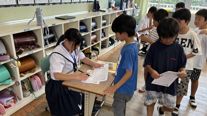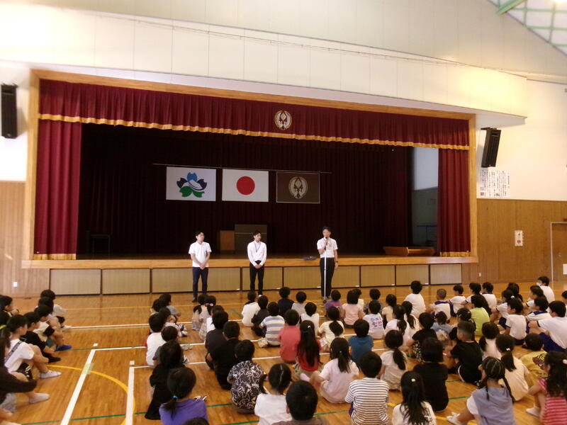 7月1日から3日間、山之口中学校の職場体験学習として、本校卒業生2名が来校しました。3月までは小学生でしたが、数か月の間に立派なお兄さん・お姉さんになっていて、児童の前でもはきはきと話していました。