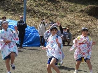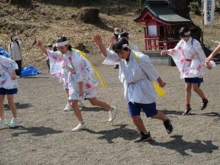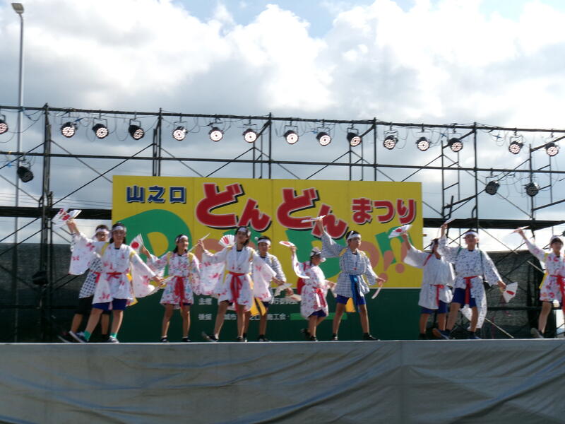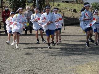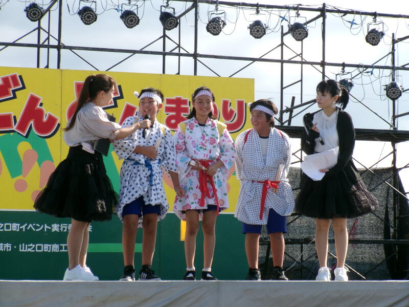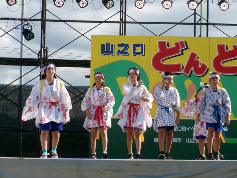 子どもたちは、地域に伝わる伝統の「向原奴踊り」を披露。この日は、残暑とは思えないほどの厳しい暑さで、出演した15時30分頃も、真夏のような日差しが照りつけていました。しかし、子どもたちは、精一杯練習の成果を発揮し、力強く踊りきりました。