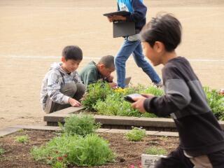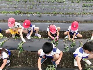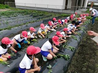 幼稚園や保育園の頃に経験したことのある児童もいましたが、久しぶりの「芋つる植え」に楽しみながら取り組んでいました。