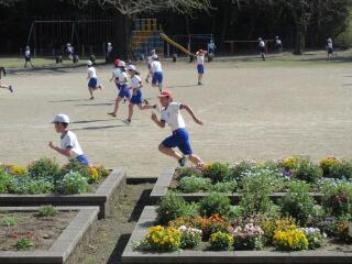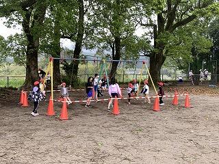 前回の反省から、この日は子どもたちを4グループに分け、1グループずつ横一列に並んでもらい、一斉にスタート。見事、作戦的中。