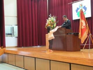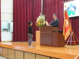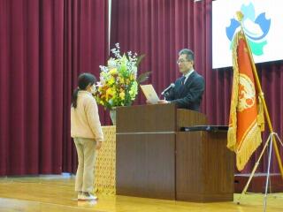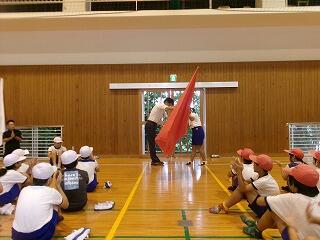 赤団、白団の団長に校長先生から団旗が授与され、両団ともいっぱいの拍手で士気を高めました。全力を出し切り、仲間と仲良く協力し、自分から積極的に取り組むこと。この三つのキーワードを実践することで、目標とする「みんながヒーロー」になれるでしょう。