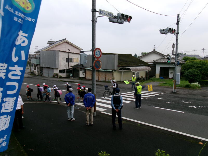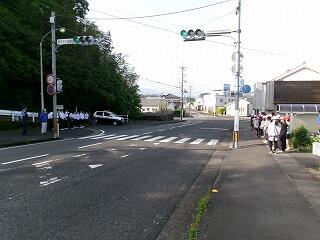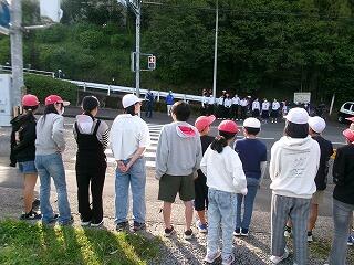 最初は中学生の元気な声に気後れしてか、あいさつの声も遠慮気味でしたが、少しずつ慣れてきて、大きな声であいさつができていました。行き交う車の運転手さんにもあいさつが届いたようでした。