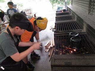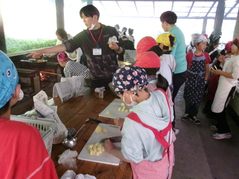 はじめは、緊張した様子の子ども達でしたが、体験が始まると各班で声を掛け合いながら必死になって火を起こしたり、役割分担をして料理をしたりして、全員が目的に向かって協力する姿が見られていました。