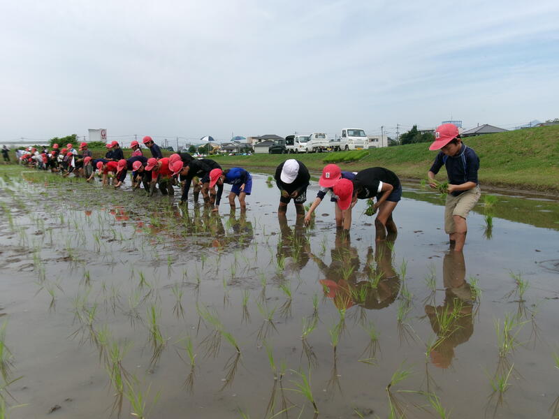 初めて田植えに取り組む子どもたちもいて、最初は、田んぼに足を取られ悪戦苦闘している児童もいましたが、次第に慣れ、どんどん植え進めていました。