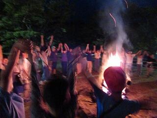 山之口小、麓小、富吉小の5年生が集まり、火起こし体験、野外炊飯(カレーライス作り)、キャンプファイヤー、追跡ハイキングなどの活動を行いました。