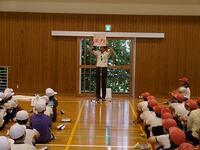 避難後、校長先生は「避難訓練は自分の命を守るためのものです。しかし、一番大切なのは日頃の行動です。廊下の歩き方や人の話をしっかり聞く姿勢が、いざという時の避難に生かされます。」と話しました。