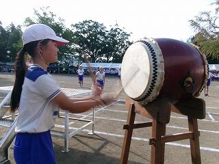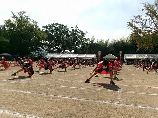 開会式の後、代表児童の指揮によるラジオ体操でしっかりと体をほぐしました。そして、競技の始めには、両団による「エール交換」が行われました。お互いの検討を誓い、団の士気を高めたところで、いよいよ競技スタートしました。練習を重ねてきた成果を存分に発揮する1日となりました。