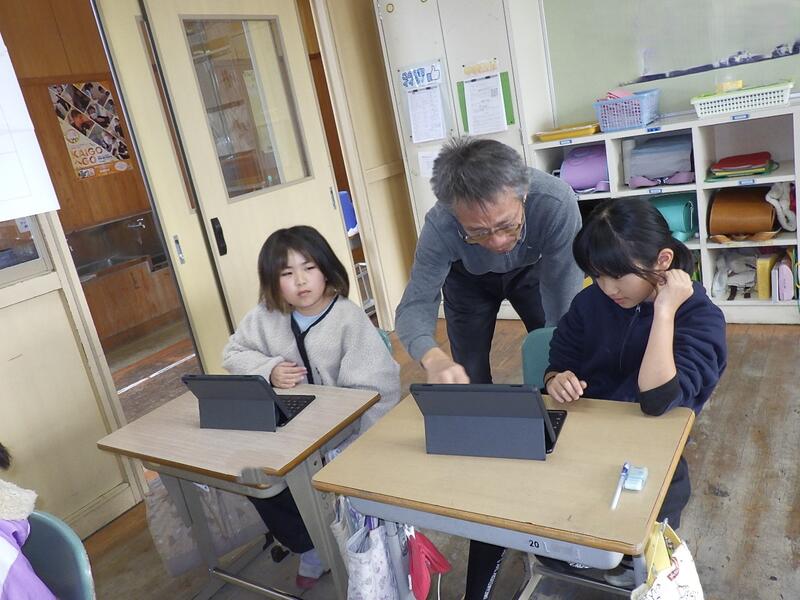 授業中には、悩んでいる児童の手助けをしたり問題の丸付けなどをしたりして子どもたちと交流しました。先輩たちが優しく教えてくれるので、3年生の子どもたちは大喜び!パソコンの扱い方もしっかり教えてもらいました。