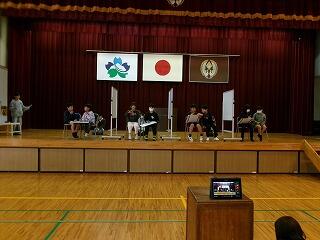 体育館と各教室を「Google Meet」で繋いでの生放送。放送委員会と担当の先生が、いろいろと企画を練って作り上げたものです。