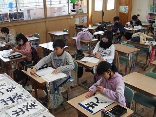 小学校3年生から学んできた毛筆学習。そのまとめとなる時間を真剣に、集中して取り組んでいた6年生でした。
