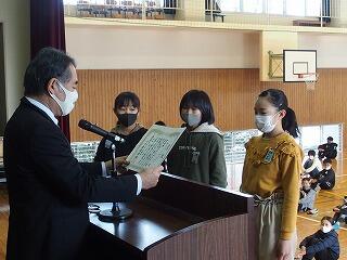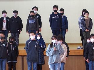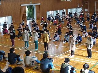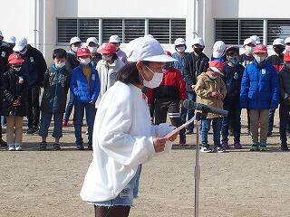 はじめに、校長先生のお話がありました。「成長」についてのお話で、成長するには目標を「決める」そして「続ける」ことが必要であることを「なわ跳び運動」の例をあげながらお話をされました。また、3月6日頃を二十四節季の啓蟄といい、すべての生き物が暖かい春の日差しの下に出て、動き始める頃であり、皆さんにとっても、すぐそこの進学や進級に向けて動き出すときで、準備をしっかりして、最後まで取り組んで行くことについてのお話でした。
