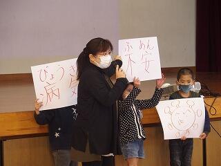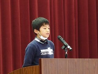 教頭先生からは、「感謝の気持ちをもち、それを言葉や行動にして表しましょう。」というお話がありました。その中で、「おはようございます」という挨拶に付け加えて、「いつもありがとうございます。」と言ってくれる子がいるという、地域の見守り隊の方からのお話を紹介されました。とてもすばらしいことです。1つ目は感謝の気持ちをもつだけでなく、声に出して伝えるという行動につなげることができたこと。2つ目は、いつも自分たちのために、地域の方がしてくれていることに気付いていることです。とてもうれしい気持ちになります。