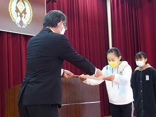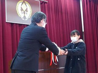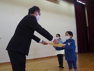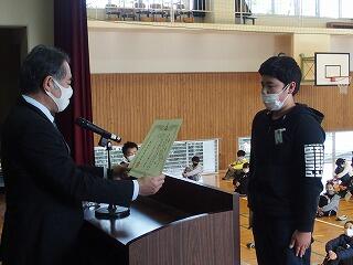 都城市精励賞を受賞した6年生児童の表彰がありました。表彰理由は、元気な挨拶や会釈がしっかりとでき、礼儀正しい。また、4月から毎朝登校後、進んでボランティア活動に取り組むなど、全校児童のお手本となった。