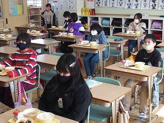 昨日、給食の時間に6年生の子どもたちの様子を見にいきました。地域の感染レベルが「国レベル1」に変更されましたが、新型コロナウイルス感染対策として給食と体育の時間以外はマスクを着用しています。