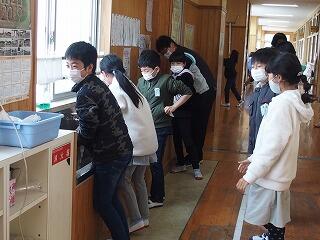 当初は1月に計画していましたが、県の緊急事態宣言が発出され、地域の感染レベルも「国レベル3」に引き上げられたため、感染拡大防止の観点から講師の先生をお呼びしての学習や集団で密になる活動は制限してきましたが、2月25日(木)に地域の感染レベルが「国レベル1」に引き下げられ、今回、練習を実施することになりました。