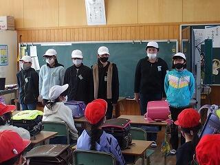 地区ごとに分かれて、この1年間の集団登下校について振り返ったり、6年生のこれまでの活動に感謝したりしました。