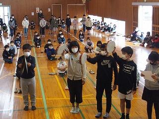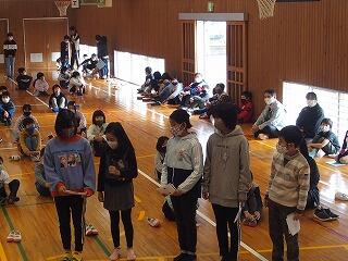 2月25日(木)に地域の感染レベルが「国レベル1」に引き下げられたのを受けて、3月5日(金)は久しぶりに全校で集まって集会や遠足を行いました。