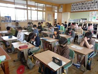 3年生は10年前 お母さんのお腹にいた子どもたちです。先週の道徳で東日本大震災の救助や片付けをされた方々への感謝をテーマにした教材を勉強したばかりで、御家庭でもいろいろなお話を聞いているようでした。みんな真剣に黙とうしていました。その姿をみて、じーんときました。