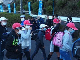 代表の児童が「5年生になってからずっと楽しみにしていました。この1泊2日で、規律・協同・友愛・奉仕の心を様々な活動を通して学んできます。たくさん楽しんできます。」と元気な挨拶をしました。そして、バスで青島青少年自然の家に向けて出発しました。本日は、日曜日ということもあり、たくさんの保護者の方が見送りにきてくださっていました。