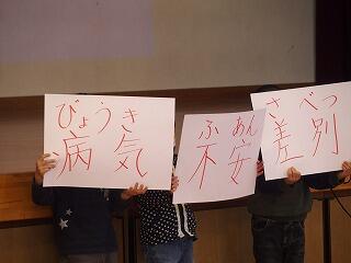 年度当初の計画では各教室で子どもたちの日頃の学習の成果や、がんばっている姿を御覧いただく予定でしたが、新型コロナウイルス感染拡大防止の観点から、会場を体育館に変更したり、体育館入場の時間的制限を行ったり、発表及び参観時間を短縮する等の対応を取らせていただきました。