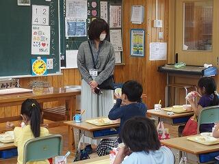 給食の準備の様子や給食を食べている様子を参観しに来られました。これからのより良い給食の提供に役立てる目的でした。