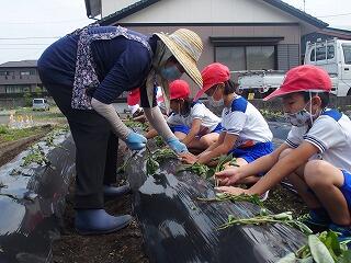 2年生は生活科の学習でサツマイモの苗植えをしました。苗は下玉利農産様よりいただきました。ありがとうございました。また、苗植えの準備から、今日の指導にいたるまで本校の学習支援ボランティアの松山様御夫妻に御支援をいただきました。多くの方のおかげで、貴重な体験が楽しくできました。ありがとうございました。