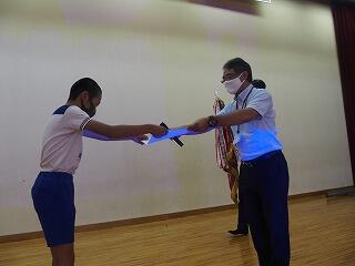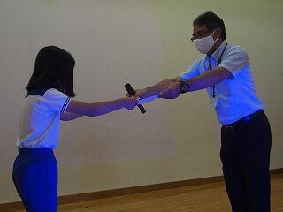 次にリーダーによるエール交換を行いました。短い練習時間でしたが、しっかりに練習を重ねていて、声の大きさ、動きともに素晴らしかったです。これから、さらにレベルを上げて本番を迎えることと思います。