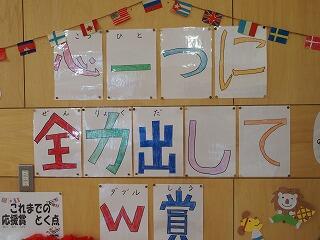 今年の運動会のスローガンは、『心一つに 全力出して W賞』でした。