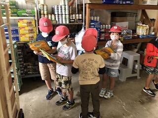 天気予報では曇りでしたが、日も差してきて、かなり暑い午前中でした。その中、学習支援ボランティアの松山様や谷口様、JA様、JA青年部の皆様、保護者の皆様に御協力をいただきながら、2時間かけて、手刈で行いました。子どもたちは、暑い中でしたが、稲を刈ったり、刈った稲を紐でまとめたり、支柱に掛けたりと一生懸命取り組んでいました。