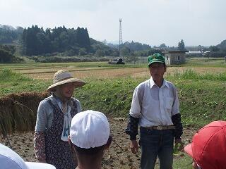 木曜日は、稲刈り前の観察と事前学習を行いました。学習支援ボランティアの松山様に稲刈りの仕方や刈った稲のまとめ方、干し方等を教えていただきました。また、子どもたちは稲の成長の様子を観察しました。