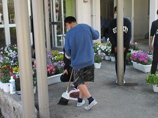 掃き掃除もがんばります。少しでもきれいに掃いて新入生を迎えたいのです。