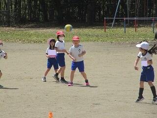 2年生は、体育でドッジボールをしていました。ボールを投げるのがうまくなったかな。