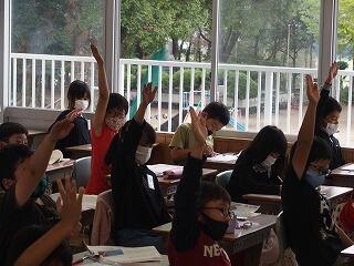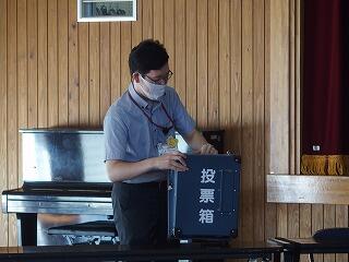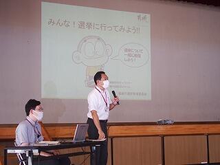 各種選挙における市の投票率の現状や、選挙は何のために必要なのか、選挙に行かないとどんなことになるのか等、クイズも交えながら分かりやすく教えていただきました。これは、投票できる年齢が18歳に引き下げられたことへの対応として、将来有権者となる子ども達に早い段階から選挙の意味や意義を理解させるための主権者教育という取組になります。教科書の学習だけでは分からないことを地域に引き戻して具体的に考えることができました。