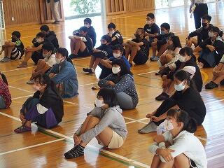 26日(月)午後に、5年生が宿泊学習から帰ってきました。さすがに、疲れた様子でしたが、満足した表情をしていました。「楽しかったですか。」の質問に、「楽しかった。」とみんなが手をあげていました。