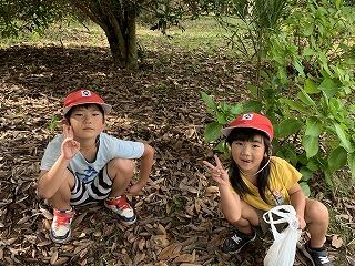 大きく成長したサツマイモに子どもたちも「おっ、でかい!」「すげー。」と驚いた様子で、とてもうれしそうでした。5本ずつ持って帰って、余ったおいもで「おいもパーティー」をする予定です。