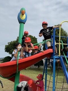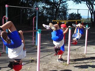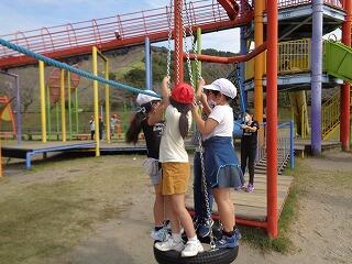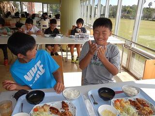 25日(日)、26日(月)両日ともに素晴らしい秋晴れで、子どもたちも精一杯活動することができました。サイクリング、青島探索、キャンプファイヤー、フィールドアスレチックと全てのプログラムを楽しめました。レストランの食事もとてもおいしかったようです。両日とも、青島青少年自然の家を利用している団体は山之口地区小学校だけで、お風呂も食事も待つことなく、すいすいと進み、ちょっと贅沢な宿泊学習でした。
