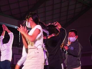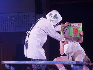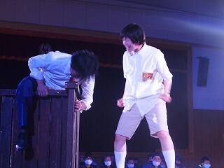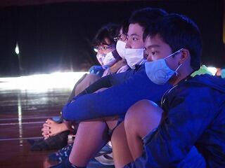 演劇名は「カチカチリンカリンカ」で、翌日から無人駅になる駅の若い駅員さんに子ギツネが少年に化けて・・・というお話です。体育館の中央に舞台があり、ステージや通路を使い、子どもたちも舞台に上がりました。心温まる内容でした。また、久しぶりに演劇を見て、表現することの素晴らしさを感じました。子どもたちも「先生、感動した。」「見られてよかった。」と大いに楽しめたようです。