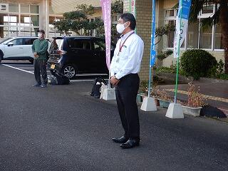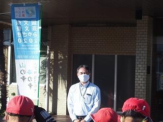 毎年、山之口まちづくり協議会が「人と人 えがおでつなぐ山之口」に向けた取組として、山之口地区の小・中学校との連携による「朝のあいさつ運動」を展開しており、本日実施されました。本年度は、第1回目を7月に実施しましたので、第2回目になります。