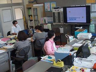 学校における新型コロナウイルス対策の取組状況の説明、授業参観、昨年度の学校評価結果に対する今年度の取組説明、質疑・協議と約1時間で予定した内容を終わりました。