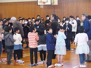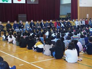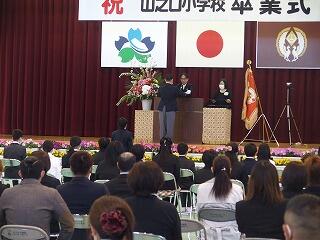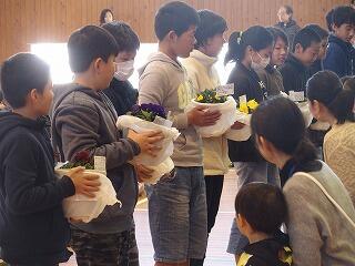 卒業式は、卒業証書授与、学校長式辞、校歌斉唱を行いました。約30分で終了しました。その後、そのまま体育館で、職員が子供たちへの思いを込めて歌を贈りました。