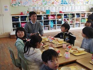 6年生が配膳をしてくれるのを静かに待つことができました。今日は初日ということもあり、ちょっと緊張気味で、食べることに一生懸命でした。食事中はとても行儀がよかったです。食事後は、「おいしかった。」とうれしそうに話してくれました。