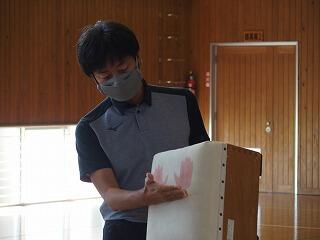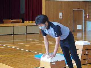 本年度は、県の教育委員会が実施している「体育振興指導教員等による小学校派遣事業」に応募し、体育振興指導教員として県立都城工業高校の体育科の先生に来ていただき、3年生の器械運動(跳び箱運動)の指導を担任と一緒にしていただきました。
