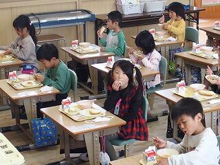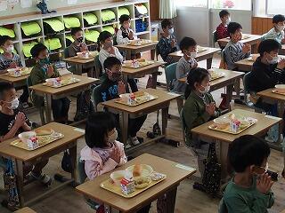 6年生が配膳をしてくれるのを静かに待つことができました。