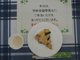 調理実習では、『野菜たっぷり!スパニッシュオムレツ!』をつくりました。その後の会食と講話では、朝ごはんの大切さや排便について学びました。