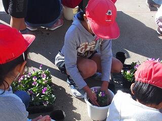 今日は一人一鉢の栽培活動を行いました。子どもたちが育て花が、3月の卒業式や4月の進級・入学の式で会場を飾ります。一人一人が栽培活動を通して、思いやりやいたわりの心を育んでほしいと願っています。