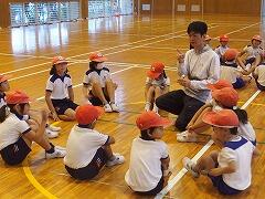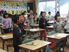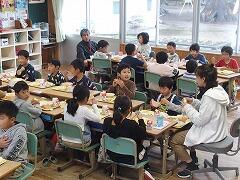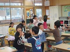 体育の授業ではボールゲームを、生活科では山之口公民館見学、音楽では歌ったり踊ったり、給食、昼休み、掃除も一緒にしました。